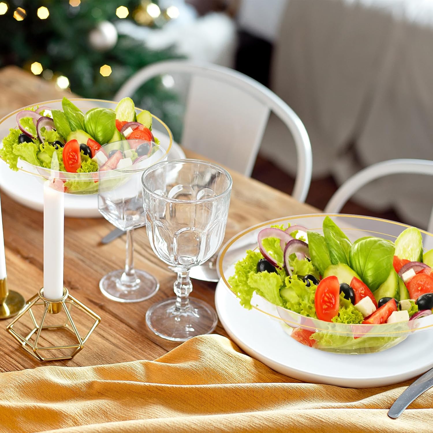 Features: Great party supplies: Our disposable plastic bowls with gold rims come in large quantity and elegant design, suitable for both daily and party use. Widely used: Disposable and convenient to use, suitable for home, restaurants, catering and various parties, can be used to hold fruits, salads, desserts, soups and other foods. Specifications: Material: plastic Size: 7.5 x 1.4 inch Capacity: 12 oz Package includes: 100 x Plastic Bowl