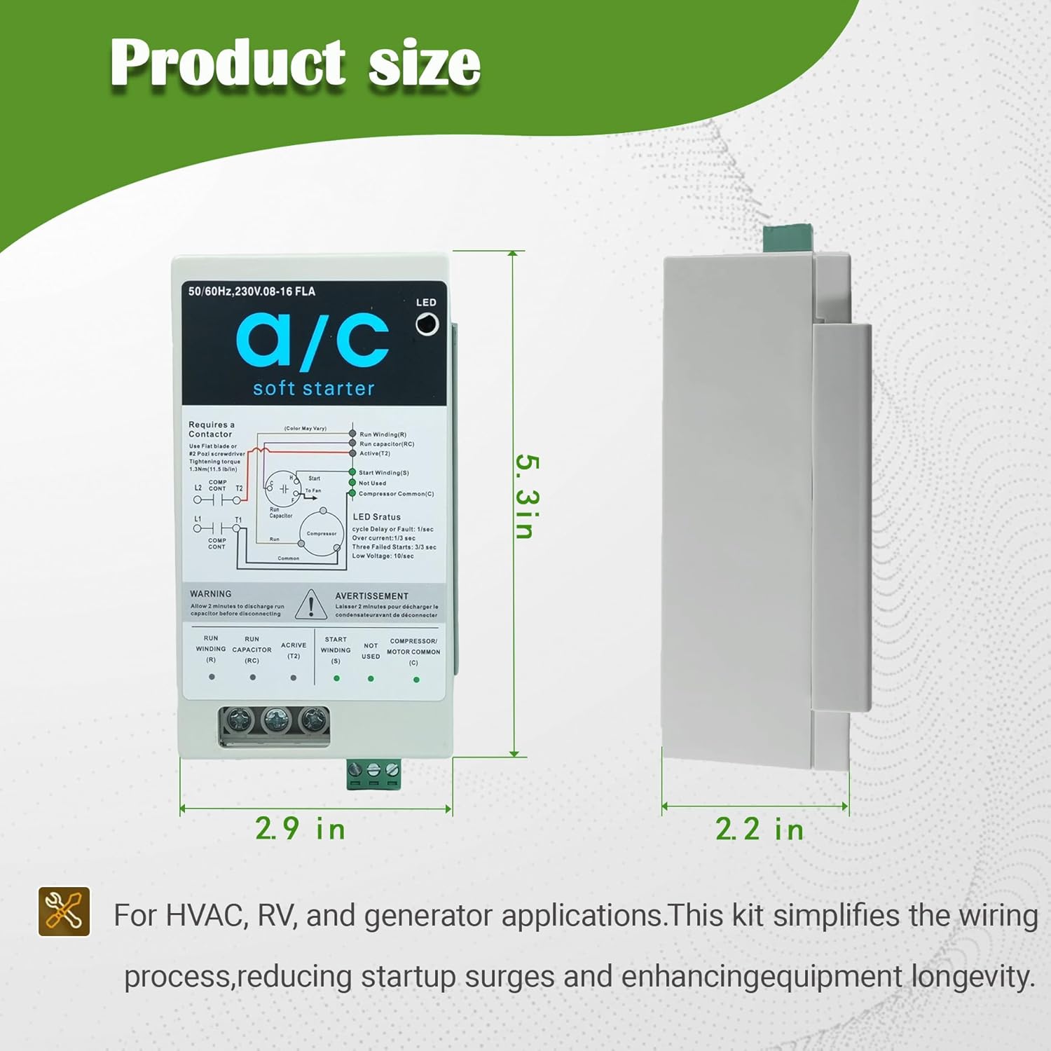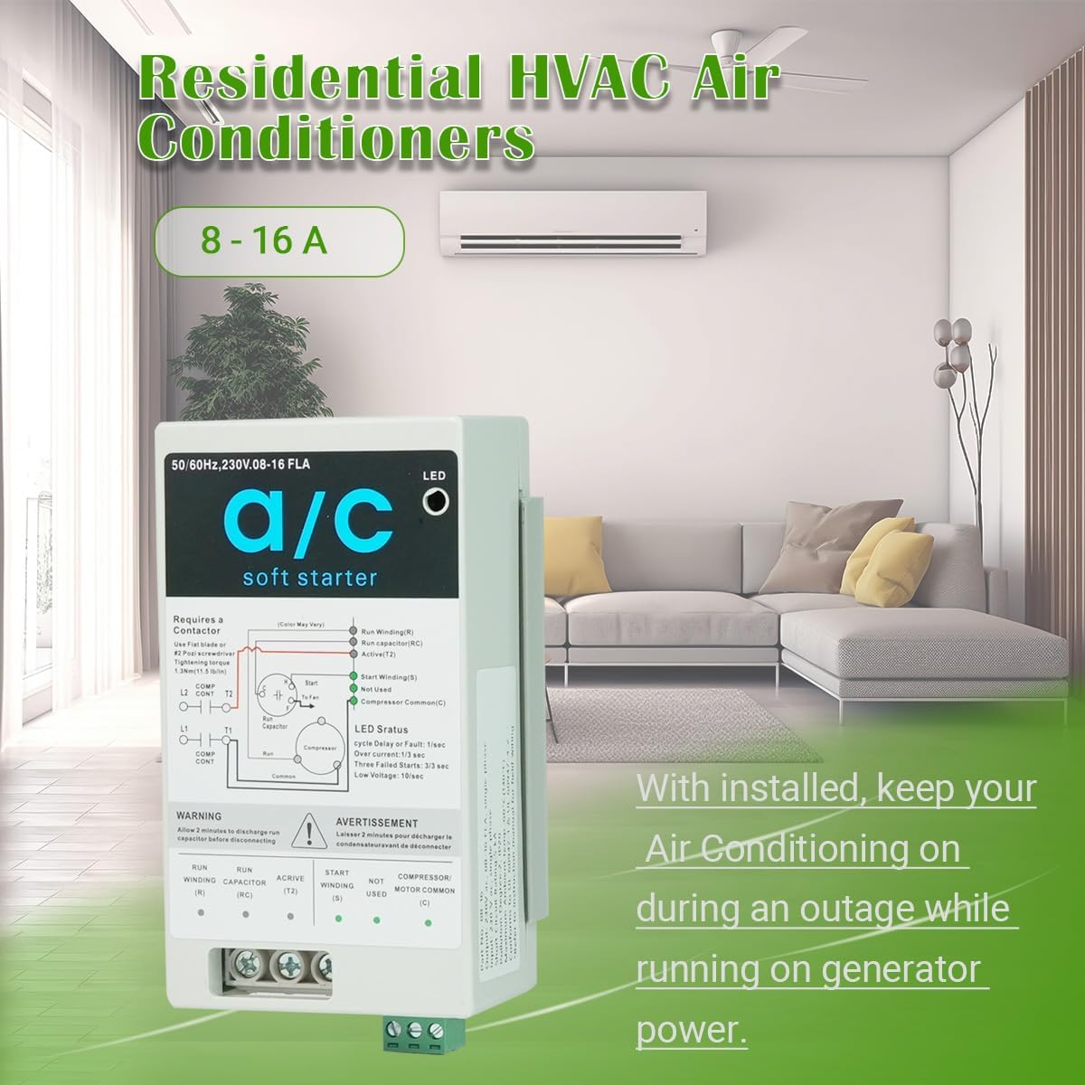Introducing the Ultimate Protection for Your Home AC: The Household Soft Starter Tired of watching your lights flicker and worrying about costly AC repairs every summer? Our Household Soft Starter is the smart upgrade your home deserves. Designed specifically for central air conditioning systems, it delivers a smooth, gentle startup—perfect for 1.75 to 3.5 ton units—This can not only protect your air conditioner but also enhances comfort throughout your home. Why Every Home with Central AC Needs This? ❤️ Extend Compressor Life 💡 Eliminate Light Flickering ⚡ Reduce Energy Waste 🔌 Stop Circuit Breaker Tripping Technical Specifications Rated Current: 16–32A Compatible AC Tonnage: 1.75–3.5 Ton Units ⚠️ Note Please verify your outdoor AC unit's specifications (tonnage, voltage, and phase) before purchase.