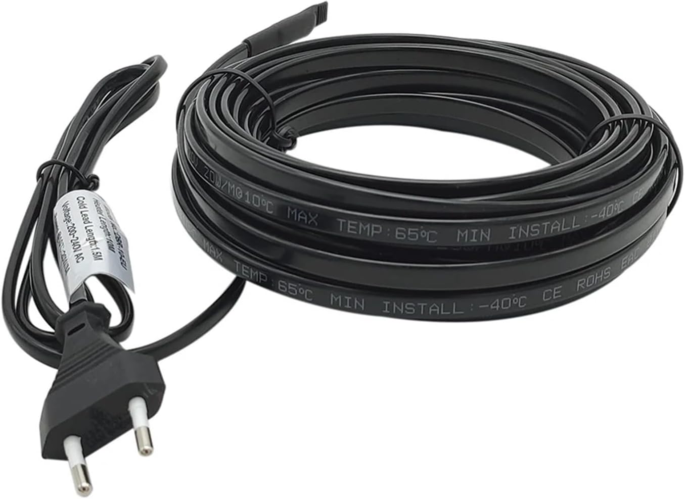Cables- 1. The cable is designed for house water pipe and solar upper water pipe freeze protection requirement in winter, to maintain the water in pipes above 0 centigrade, and do not need a controller.- 2. The cable is very easy to install, suit for metal and plastic water pipes.- 3. We use the pure copper as the conductor, and the PE jacket, it's , UV resist, better than PVC jacket.Product name:water pipe heating cable/self regulating heat trace cableVoltage: 220V 230V 240VPower: 20W/m @10 CelsiusLength of power cord: 1.5meterMax working temperature: 60CelsiusMin installation temperature: -40CelsiusStart-up current: less than 0.6 A/mMin. bend radius: @20C:25.4mm @-30C:35.0mmCable Structure:1. Pure copper conductor2. heating element3. PE insulation ==========Voltage : 81-600V(include600V)Structure : Without modular telephone connectorsUse : Not TelecommunicationHigh-concerned chemical : NoneModel Number : DBRis_customized : YesApplication : heatingType : InsulatedConductor Type : SolidConductor Material : CopperInsulation Material : PEOrigin : Mainland Certification : Working Voltage : AC200~240V, 50/60HzPower : 20w/mMax heating temperature : 65C±10%Width : 8MM±0.2Max circuit length : 20mLength of power cord : 1.5m : EU