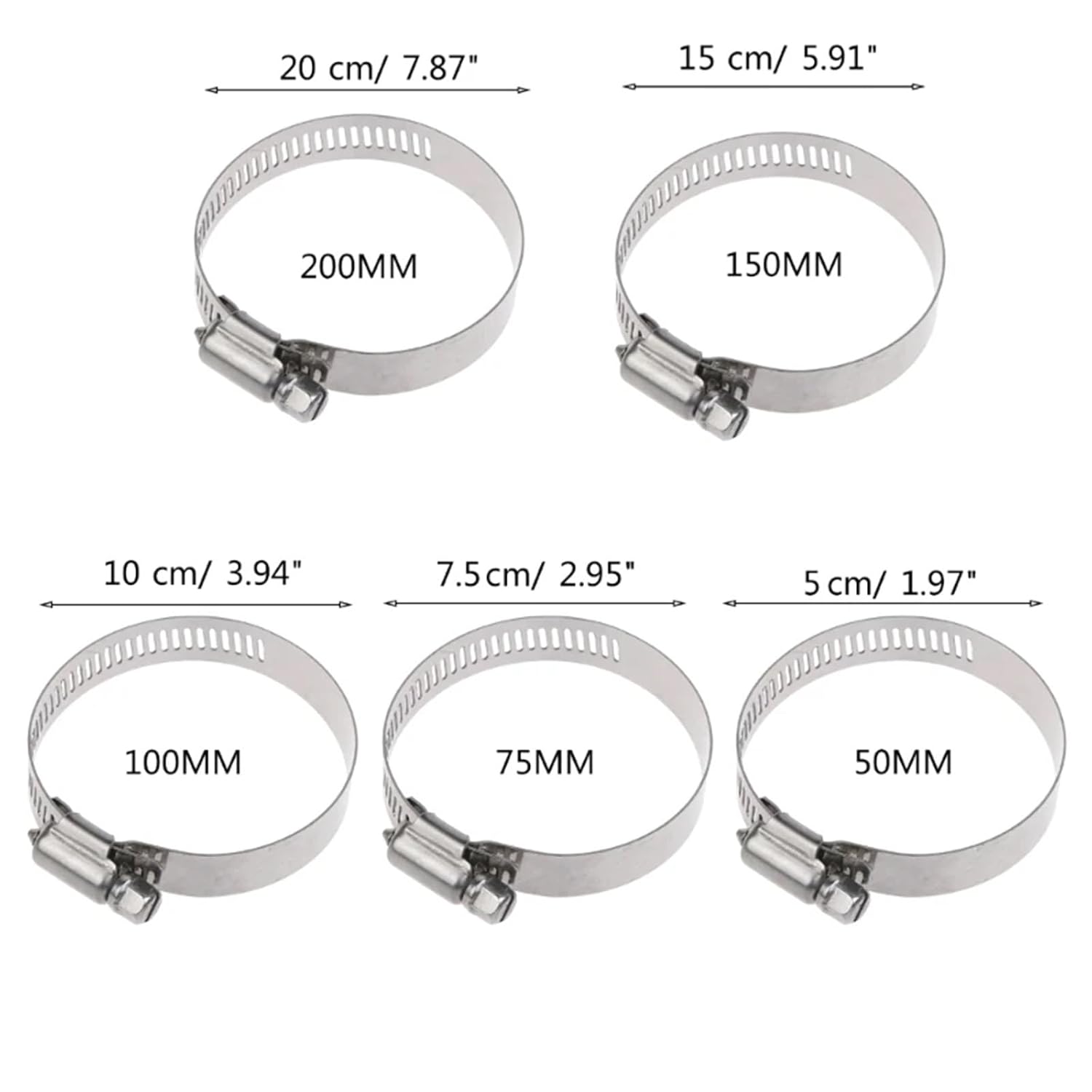 Hose ClampsMaterial:Stainless SteelColor: SilverType:50mm/75mm/100mm/150mm/200mm50mm pipe clamp: suitable for 40-55mm100mm pipe clamp: suitable for 90-114mm150mm pipe clamp: suitable for 140-165mm200mm pipe clamp: suitable for 195-210mm1x Hose ClampsModel Number : Hose ClampsStructure : G ClampDIY Supplies : WoodworkingMaterial : Stainless steelUse : Pipe Clamps
