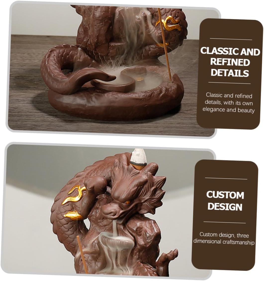 Package List 1 x Backflow Incense Burner Characteristics -Material: Purple Sands -Size: About 18.50X14.00X12.00cm/7.27X5.50X4.72in -Product Info:incense burner -Color: Brown - It is perfect for the indoor use, such as home, office, salon, etc., which is practical and reliable Dragon Backflow Incense Holder. - Unique and dragon design, full of art and cultural atmosphere, which is creative and unique Backflow Incense Burner. - Wild range of application. Suitable for homes, offices, tearooms, yoga rooms and other places Incense Stick Holder. - It has strong practicability and has the effect of calming and sleeping, practical and decorative at the same time Purple Sand Incense Burner. - The perfect gift for friends or families who like incense, they will like the censer adorn Purple Sand Craft Decor.Goods InformationDragon Design Censer Are you looking for an incense burner that is both beautiful and practical? Then you miss our products, workmanship, high grade and design.Dragon Backflow Incense Burner Is .Office Desktop Adornment Suitable for families, bedrooms, meditation rooms , etc