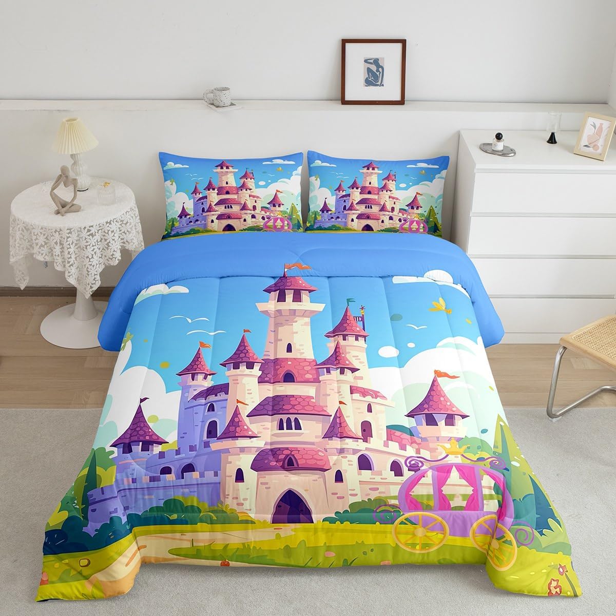 Package Include: Comforter and Pillowcase. Makeover your bedrooms every season with our Comforter sets. Perfect item for your room, girls boys youth room, master bedroom. Size Information: Twin size down comforter 68"W x 90"L and 1 pillow case 30"W x 20"L. 2pcs with 1 Bed Comforter and 1 Pillowcases in A Bag Full size down comforter 79"W x 90"L and 2 pillow cases 30"W x 20"L. 3pcs with 1 Bed Comforter and 2 Pillowcases in A Bag Queen size down comforter 90"W x 90"L and 2 pillow cases 30"W x 20"L. 3pcs with 1 Bed Comforter and 2 Pillowcases in A Bag King size down comforter 104"W x 90"L and 2 pillow cases 36"W x 20"L. 3pcs with 1 Bed Comforter and 2 Pillowcases in A Bag Useful and practical A luxurious product for homes, dorm rooms, hotels, guest rooms. Practical to use for being polyester, feels like cotton which is Super Soft and Breathable. No chemicals used, No dye substance harming the health of you or your family. Unique design: Vivid Colors won't fade thanks to new 3D digital printing methods. These unique designs match well with various color palettes of your rugs, curtains, headboard, furniture, and all other decor accessories. Personalized: As manufacturers of digital printed home textiles, we follow current trends and bring you the latest home fashion. More Decor: Search our store to get more christmas theme, new year theme, autumn fall theme, any holiday theme, modern abstract, farmhouse rustic theme, simple pattern, garden flowers etc. home decoration. Warm Tips: 1. Please allow 1-3cm error due to manual measurement. 2. Actual color may vary from the color on your screen due to monitor color restrictions.