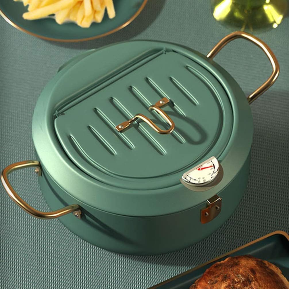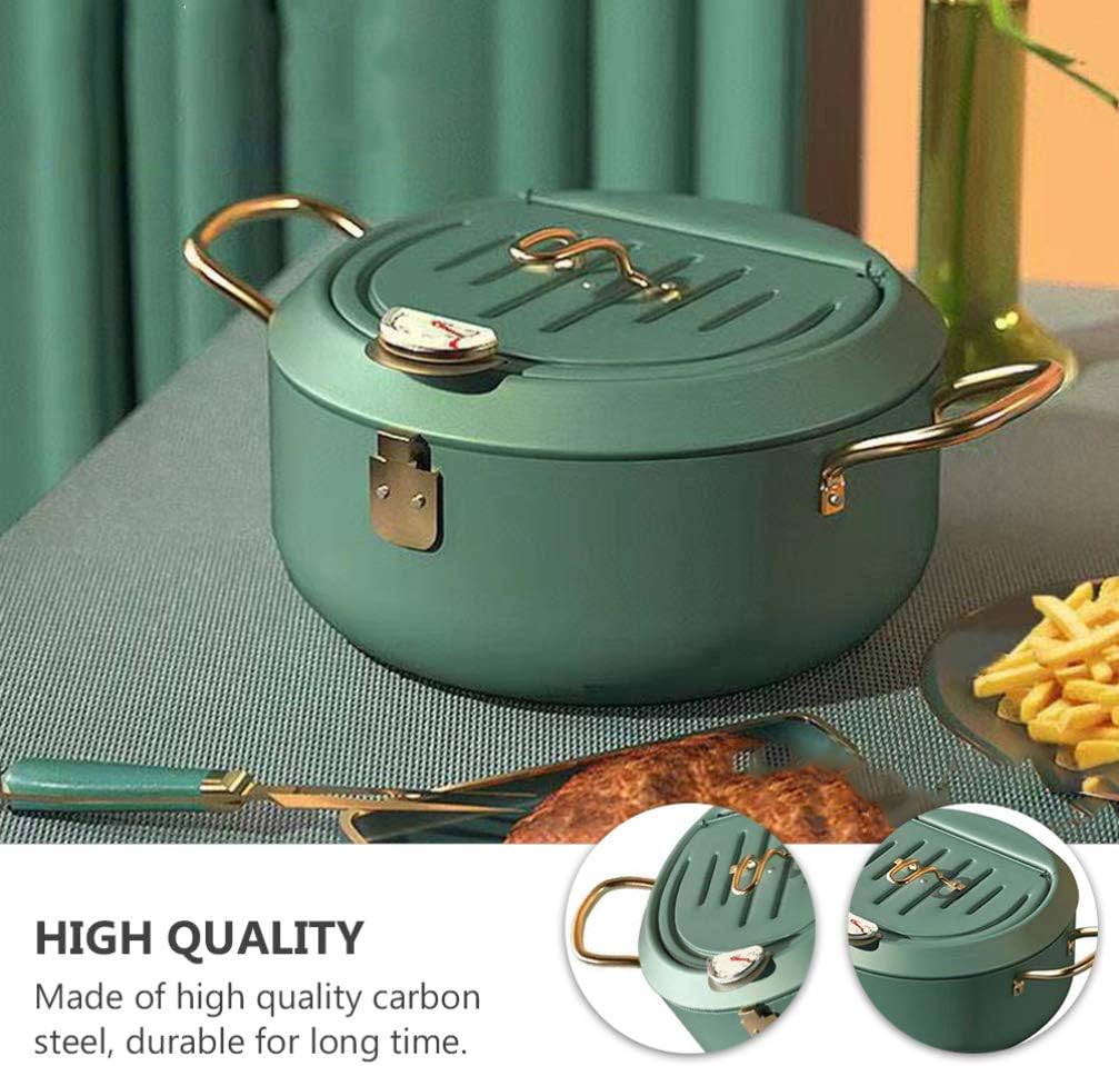 Description Practical in Use: With the deep fryer, you can make the oil temperature control more precise. Features- Color: Green- Size: 30. 00X20. 50X13. 50cm/ 11. 79X8. 06X5. 31inch- Material: carbon steel Package Including 1 x frying pot
