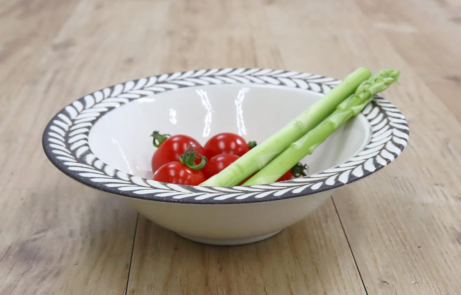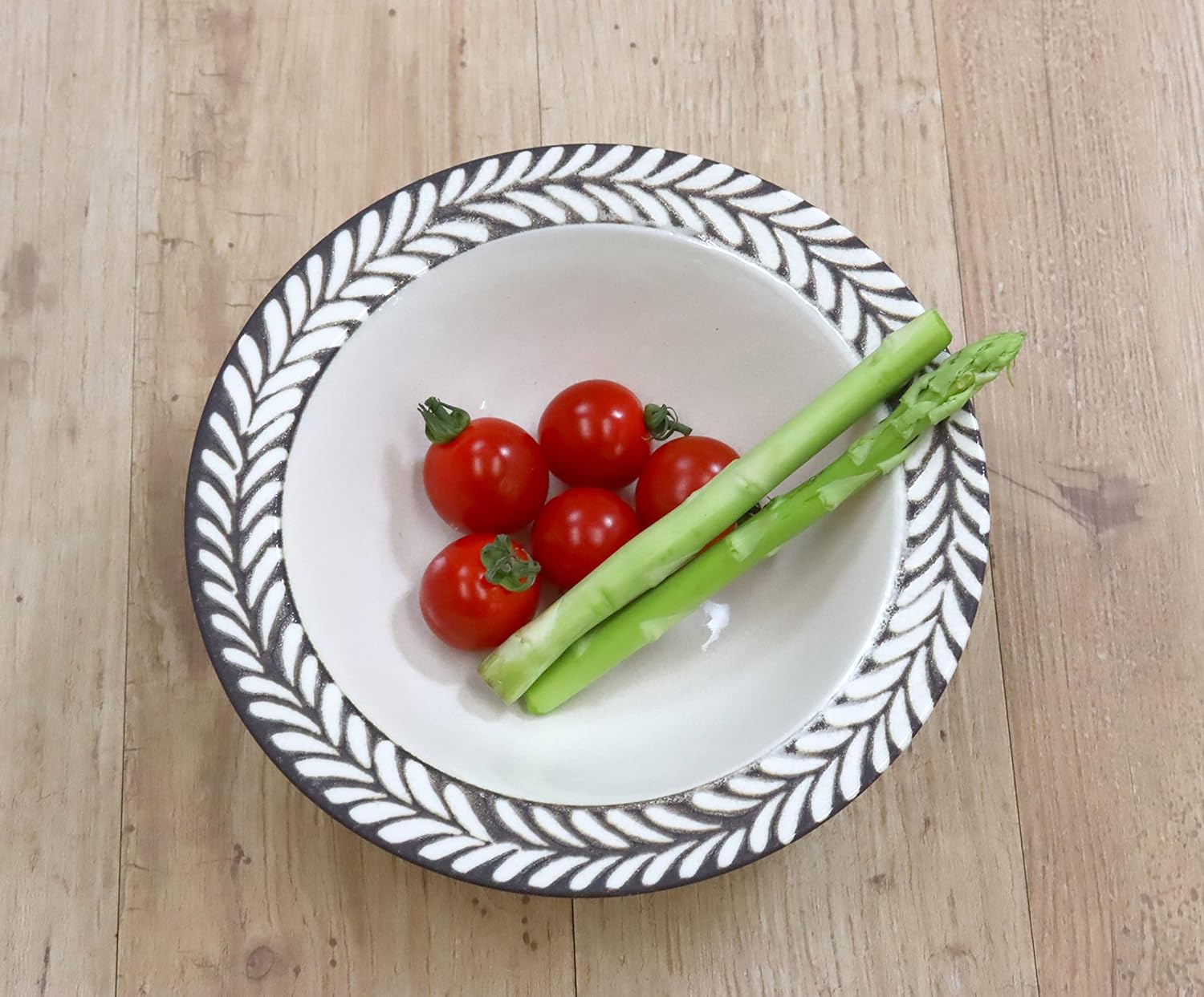 The leaf motif is accented with a thick Scandinavian style tableware. Great for wild ingredients.