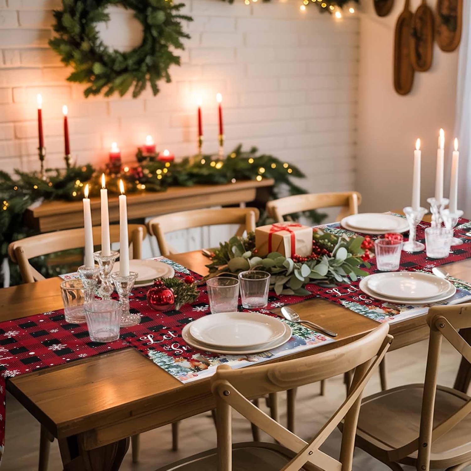 Christmas Placemats fo Dining Table Features: Made of polyester and cotton linen material, skid resistance ,heat resistant and durable. Vibrant color and perfect texture. Not only do they protect a tabletop placed anywhere, but they're also stylish, making them an eye-catching kitchen or dining table decoration! Christmas themed pattern are unique and beautiful, with brightly colored snow scenes and Christmas trees. When you eat a lot, the tabletop gets messed up. Luckily, there are placemats to protect your table or bar from cutlery wear! They look more luxurious and are more comfortable to use. We believe that placemats are an integral part of your dining table. Perfect for dinner table, good match with glass table, white dining table, wooden farmhouse table, brown dinning table. All of placemats are in one size: 13x19 inches Placemats are cut by hand and maybe one or two inches error. Tips: Due to different monitors, the picture may have a slight color difference. If you have any issue upon receiving the item, please contact us immediately. We will respond as soon as possible.