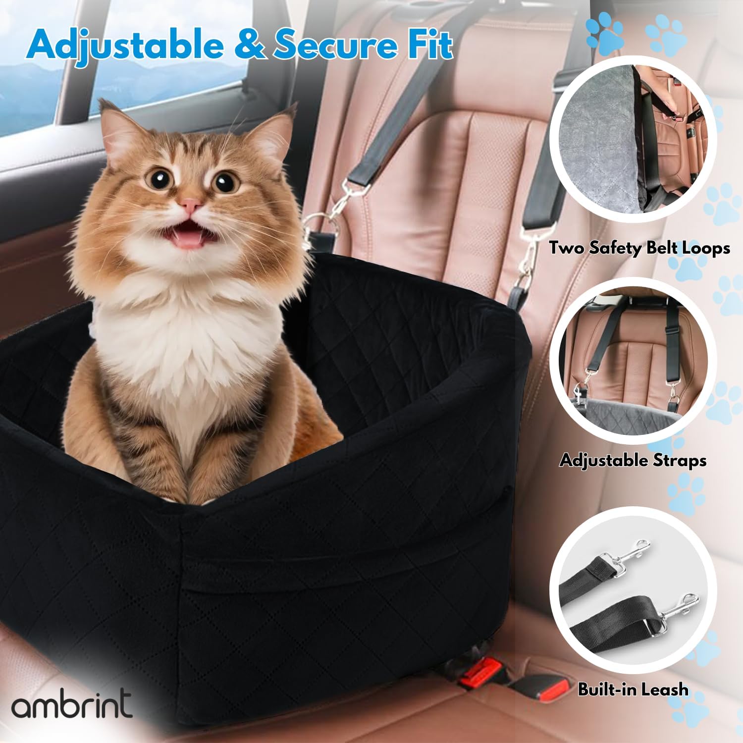 | Directions | Secure the car seat with the seatbelt and fasten the harness to your dog. |