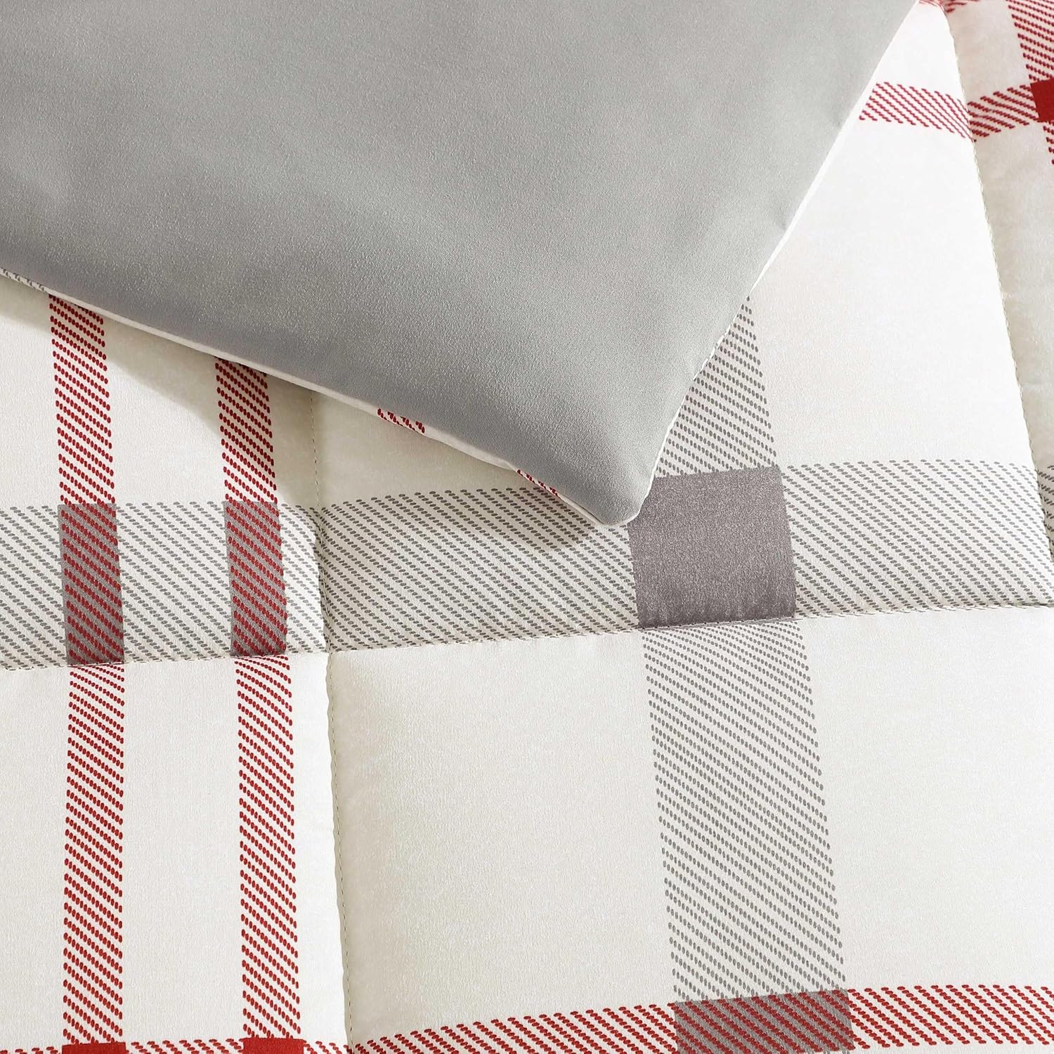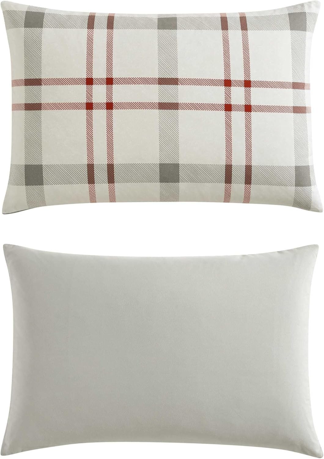 The large scale of this plaid offers a bold and updated casual look for your bedroom. A handsome neutral palette of putty and chrome is accented with beet red and the small-scale check in putty and chrome on the duvet reverse is the perfect complement to the larger plaid face. Printed on soft cotton, this bedding set is comfortable and inviting. Coordinate with our Eddie Bauer sheet sets, blankets and decorative pillows to complete the look for your room.