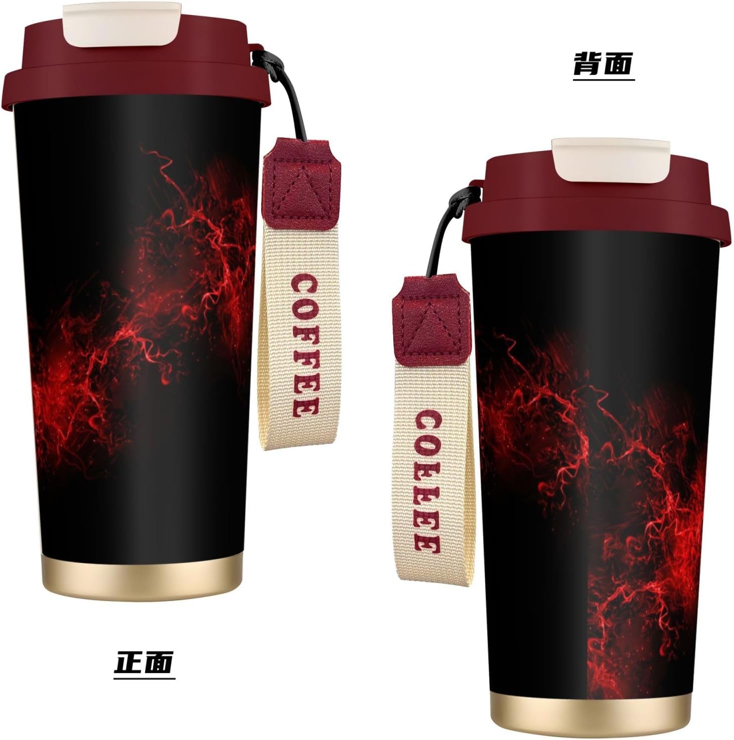 This Explosion Burst Red Black Print travel Coffee Mug supports three drinking modes: the direct drink spout for quick drinks during commutes, the straw port for iced coffee and other spill prone beverages, and the open top design that replicates the traditional coffee cup experience. BPA Free 316 Stainless Steel, Safe and Durable Inner liner made of food grade 316 stainless steel, non toxic, odorless, BPA free, safe for long term use.