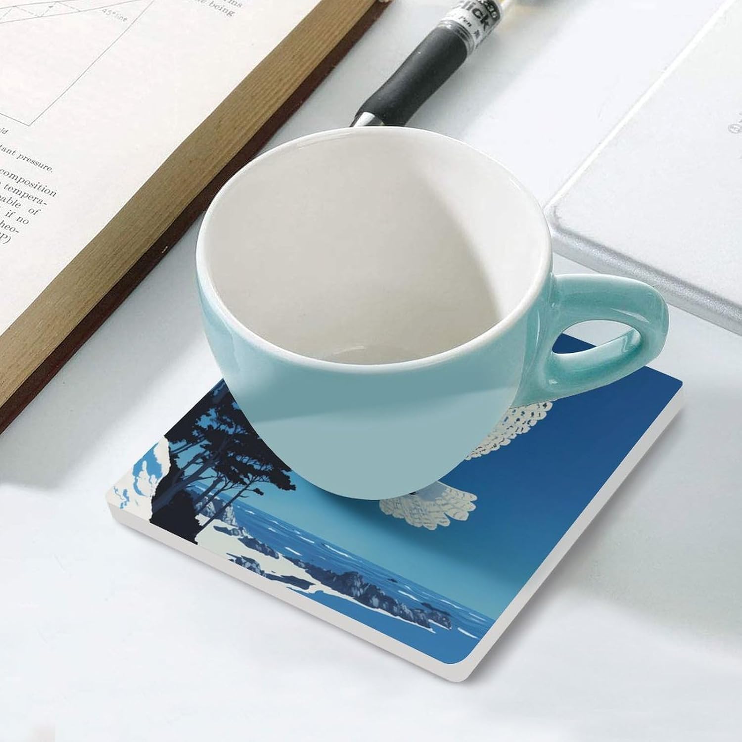 coasters,coasters set of 4,coasters set of 6,cute coasters with Funny Pattern Printed Ceramic Coasters with Cork Base Cup Holder Absorbent for Drinks Coasters Square Tabletop Protection Mat Decorative Cute Coffee Cup Beverage Coasters
