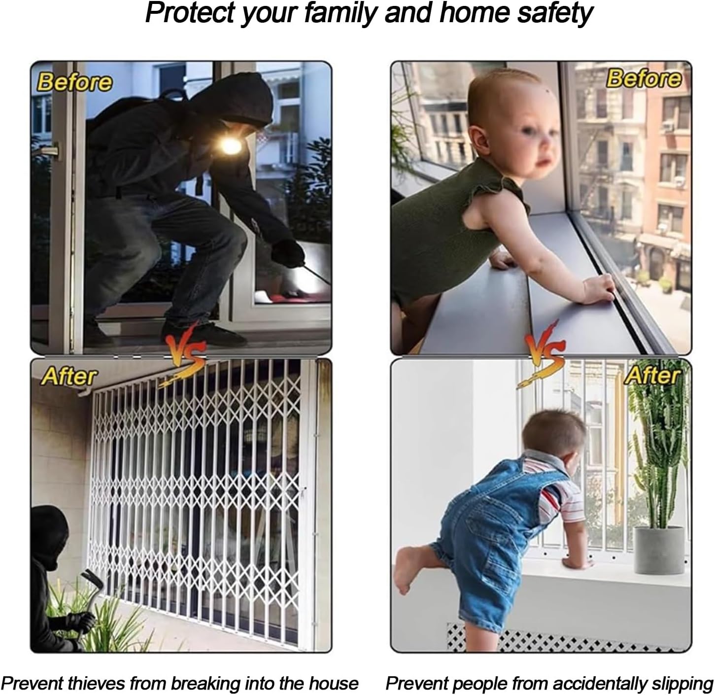 Introducing the Aluminum Alloy Folding Security Window Bars, designed to enhance the safety of your home or business. Established in 1996, specializes in a range of outdoor and indoor products, ensuring durability and functionality. Our retractable modular burglar bars offer a reliable solution for preventing unauthorized access while maintaining aesthetic appeal in various settings, including bedrooms, offices, attics, and more. Crafted from high-quality aluminum alloy, these security window bars are built to withstand the elements, promising long-lasting protection. The foldable design allows for easy operation; simply open or close as needed, making them suitable for both indoor and outdoor installations. Customizable sizes (width: 80-160cm; height: 65-150cm) ensure a perfect fit for your windows, while the sleek black finish complements any décor. Safety is paramount, and our lockable window guards provide an additional layer of security, giving you peace of mind. When measuring for installation, remember to take the minimum values from the top, center, and bottom for width, and from the left, center, and right for height. Whether you’re securing a child’s room, a basement window, or a hotel suite, the security window bars are versatile and effective. Invest in your safety today with our premium burglar bars, and experience the blend of practicality and style. Each package includes one push-pull window guard, ready to enhance your security with ease.