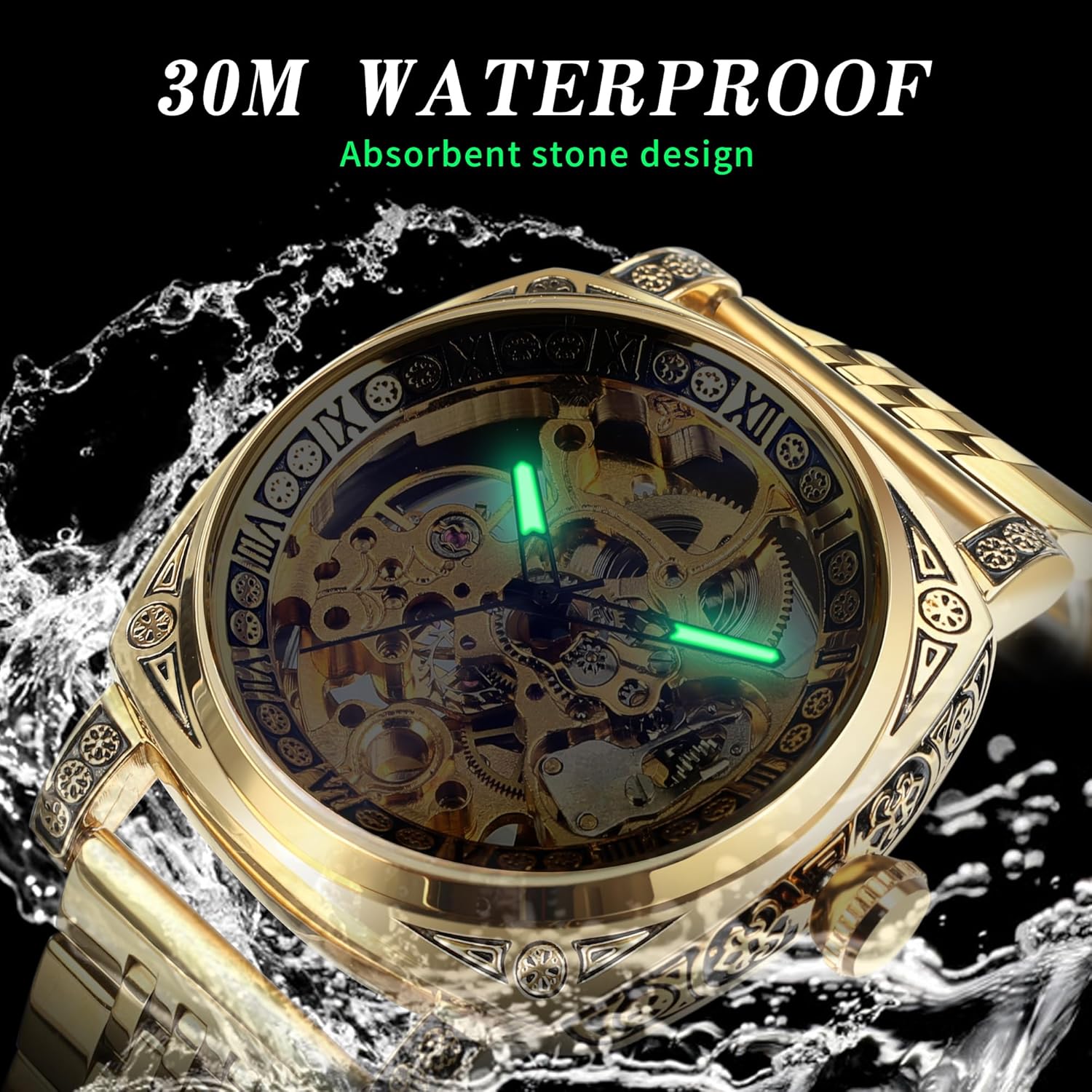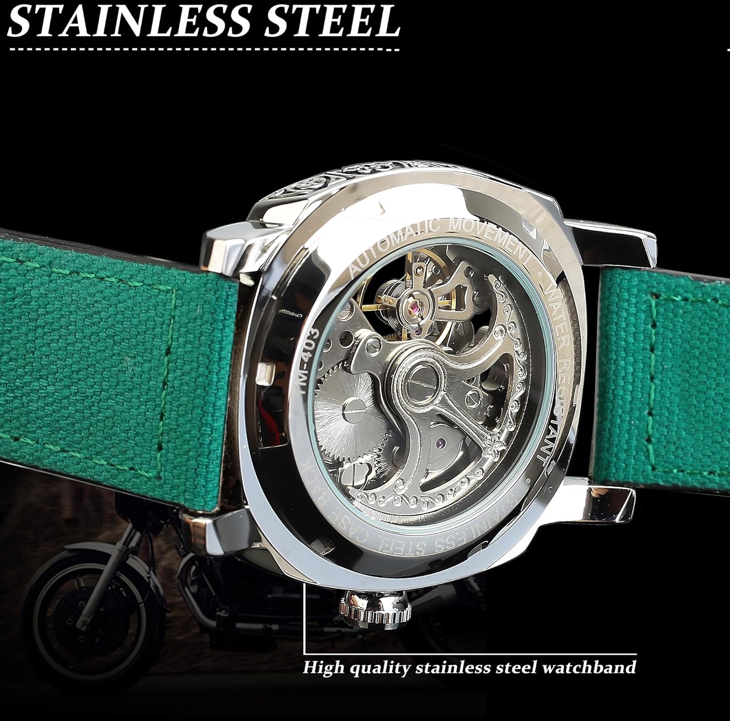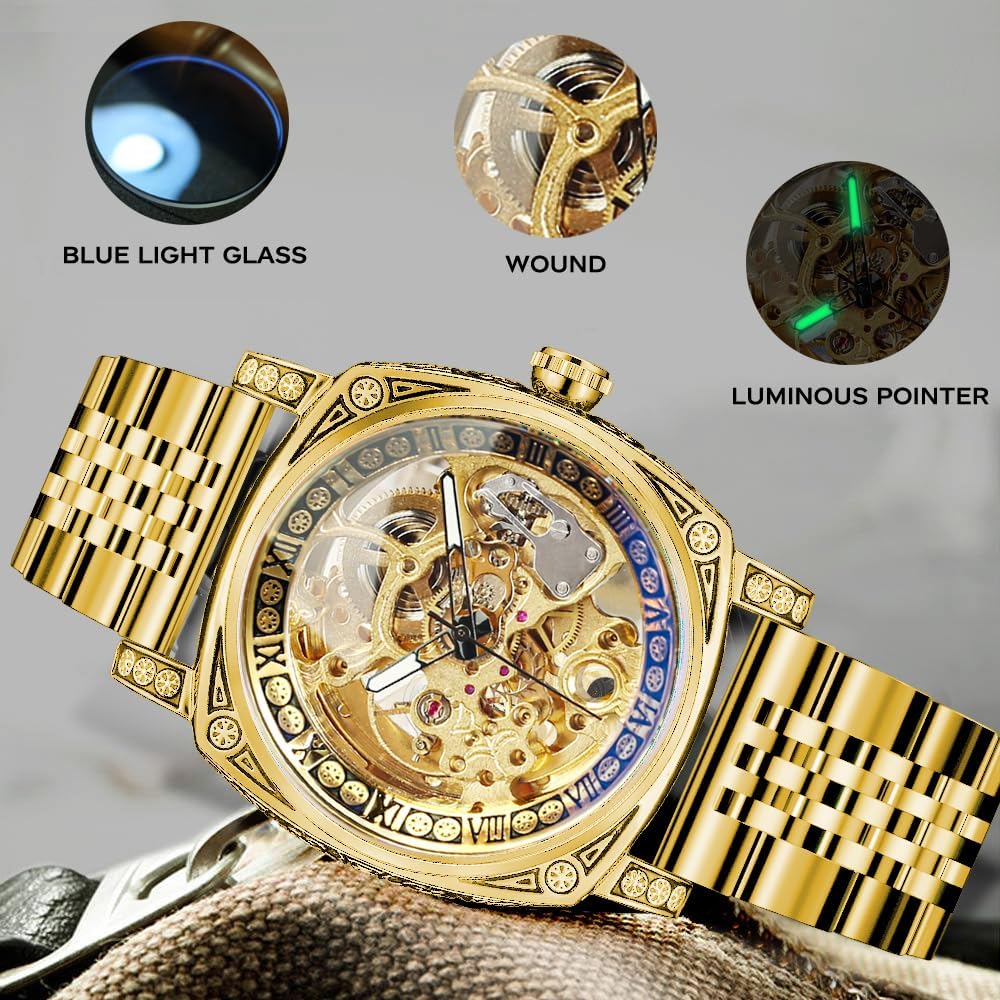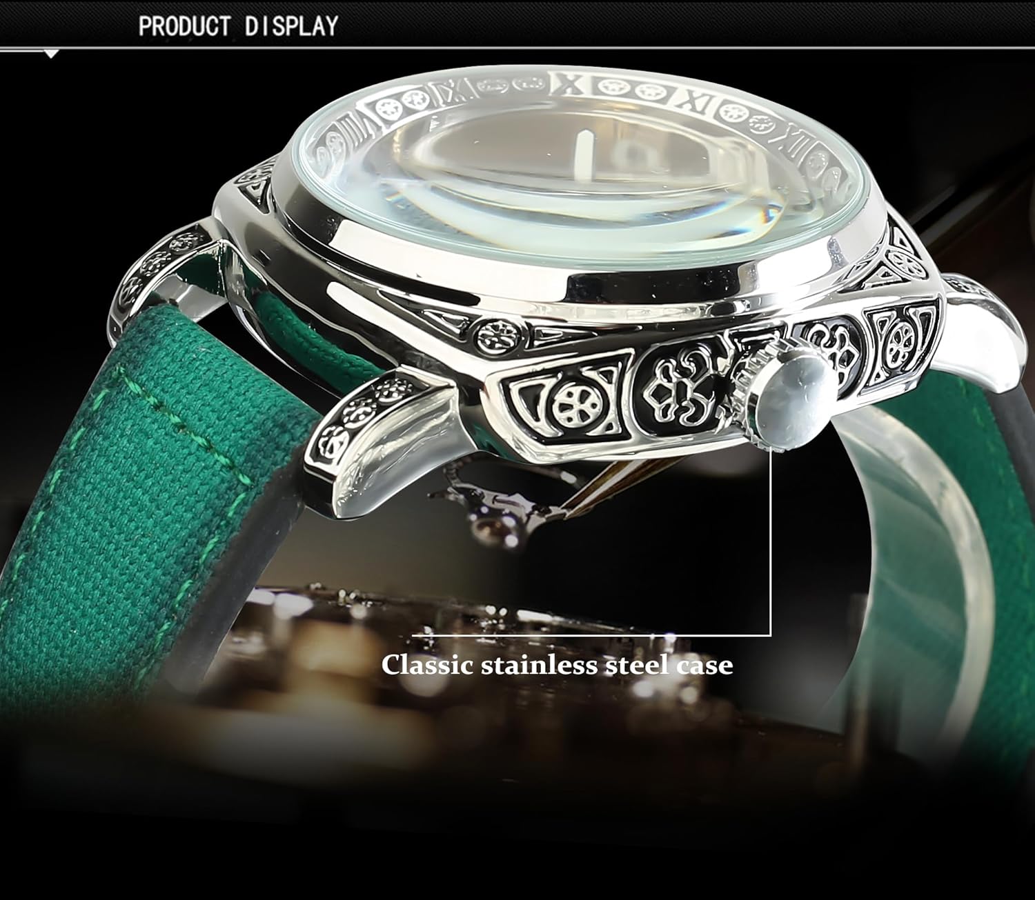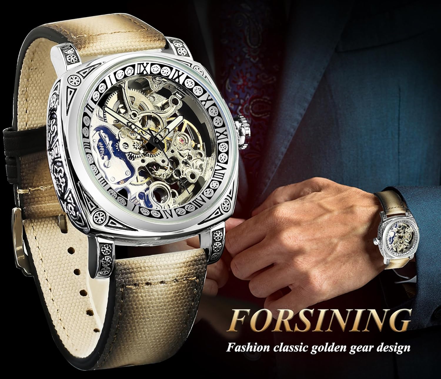 Description: - Genuine Leather band gives you a new classic definition. - Stainless steel watch case makes the watch more durable. - Daily water resistance (not for showering and swimming). - Automatic winding mechanical movement lets you wear the watch anytime. - Color may not appear as exactly as in real life due to variations between the computer monitors and nacked eye color difference. Specification (Approx): - Diameter: 42mm - Thickness: 15mm - Length of watch band: 24cm - Band width: 22mm - Movement: Self-winding Mechanical - Watch band: Genuine - Watch case: Stainless steel Package includes: - 1 x Mechanical watch - 1* Forsining Cardboard Gift Box Reminder: 1. Please peel all films off before wearing. 2. Please keep the watch away from magnet to avoid making the watch stop working. 3. Please wind up the watch before every usage.