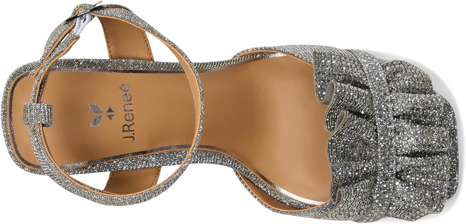 This year-round women's fabric/rhinestones square toe sandal has a memory foam+latex insole and synthetic lining and comes in sizes M 5-11 12 13 W 7-11 12 13. This style also features a buckle closure on a 3 inch heel.