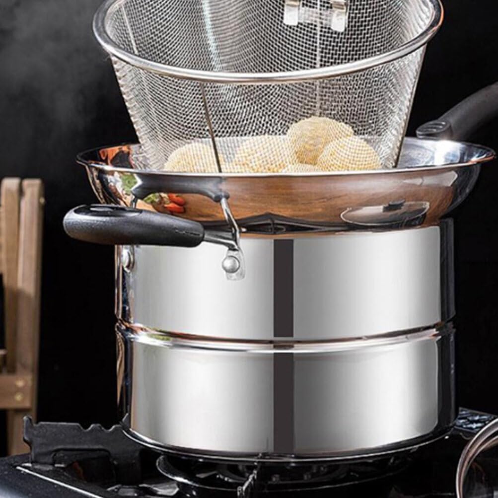 DescriptionAre you looking for cooking saucepan? The cooking pot with steaming pot is manufactured of stainless steel material. It is designed for cooking foods like soup, oatmeal etc. Smooth surface with simple design, suitable for home and restaurant using.Features- Color: Silver- Material: Stainless steel- Pot Size: 22.00X22.00X20.00cm/8.65X8.65X7.86in- Handle Size: 17.00X3.00X2.50cm/6.68X1.18X0.98in- Owning the strong wear and break resistance ability, very practical, with excellent texture.- Non-stick and smooth surface, and handle. The single handle can effectively prevent burns.- Heat is distributed evenly for quick cooking of soups, milk, convenient and useful for you, small size and portable. - After frying, simply lift the fryer basket and move directly from the pan to the plate, easy to use.- The handle for easier and more convenient to move. The design is smooth and does not hurt the hand for safe using.- Color: Silver.Package Including1 x pot1 x plate1 x mesh sieve