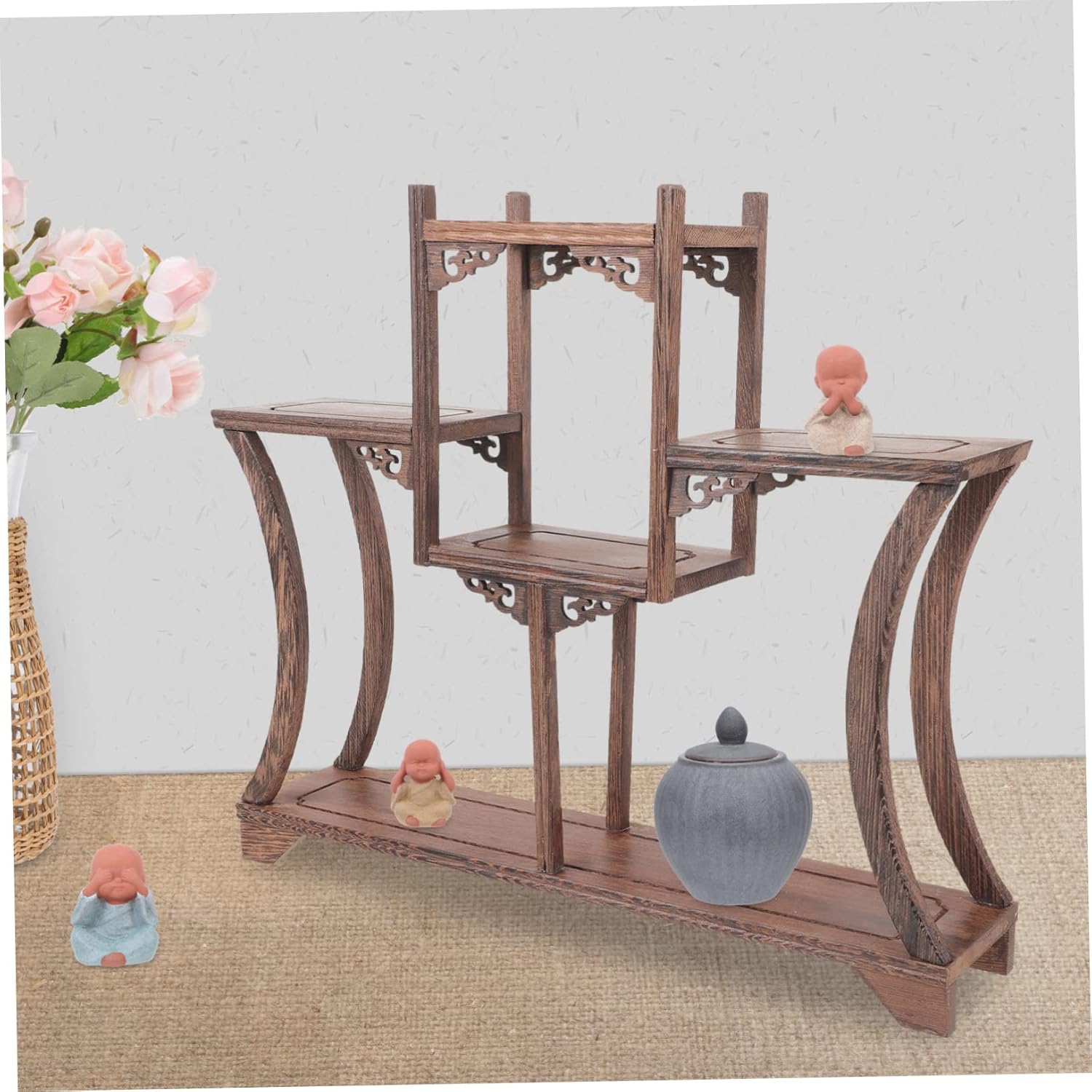 Package List 1 x Storage Rack Characteristics -Size:34.00X31.00X7.00cm/13.36X12.18X2.75in wood plant stand -Material:Wood curio display stand -Color:Coffee wooden crafts - Put it on your desk, it looks elegant and charming, highlighting your curio display stands. - No matter it is placed in room, study, office or tea house, it can show different tastes home decors. - Chinese style design fits for a variety of room decoration, adding some variation to your desk ornament rack. - The base is stable, the whole structure is reasonable, prevents antique to overturn vintage display stands. - Break the dull feeling of space, , suitable for a variety of scenes of space matching antique showing shelf.Goods Informationantique display stand It comes with the simple and practical design, which is unique and decorative.home decor It is widely used in home, office, shop, store and so on.wooden craft This curio display rack is made of wood material, which can withstand the use
