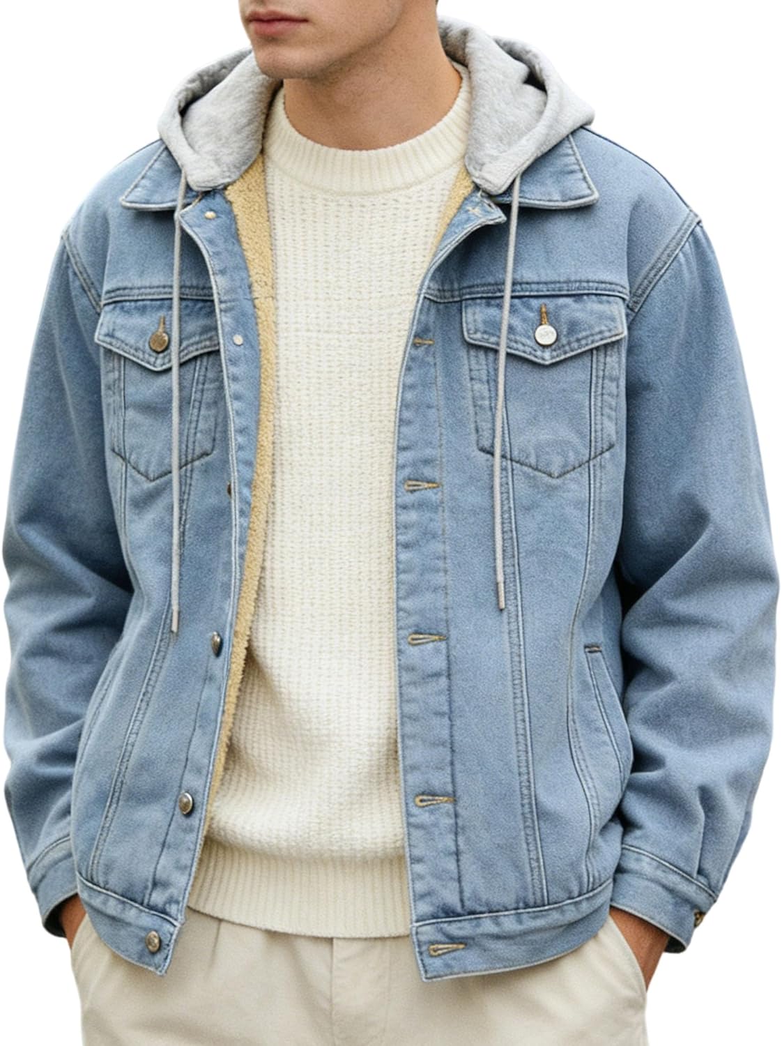 Men's Denim Jackets Cotton Lightweight Casual Button-Down Jean Coat Trucker Jacket Outerwear Product Information: Season: Spring,Autumn,Winter Gender: Male Features: Casual,Fashion,Vintage,Distressed Style: Jackets,Coats,Overcoats,Outerwear,Windbreaker Denim jacket makes you looks fashionable and modern The jacket is make of cotton denim fabric, soft and comfortable. You can wear it as a casual work jacket, a motorcycle riding jacket, it's also suitable for biking, travelling, outdoors. This is a jacket suitable for spring, autumn and winter. Multiple pockets and button show fashion style. Size: Please check the size chart in the picture carefully before purchasing. Suggest you choose larger size than usual. Note: Due to different computer screens, the color may be slightly different, and there may be slight color difference.