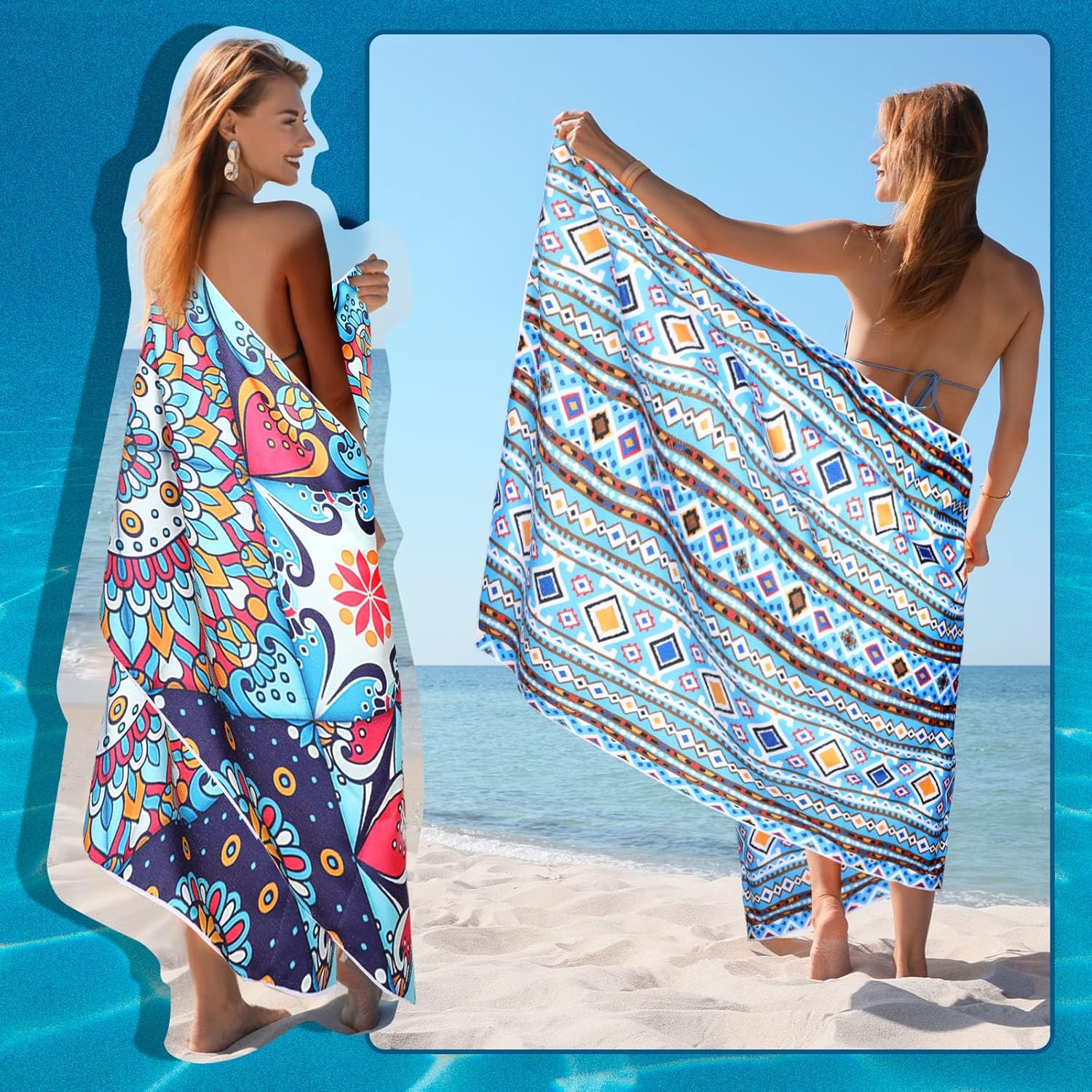 Features: When you roll up your sand free travel towel, you'll find that our towels are small and lightweight, take up very little room in your bag or car, and are easy to take with you anywhere. The oversized swim towels bulk can be directly covered on sand or grass, and the sand can be shaken off quickly when not in use, because the surface is smoother. Adopt high definition digital printing technology, bright colors, won't fade even after washing. Specifications: Material: microfiber Color: as the picture shown Size: about 60 x 28 inches/ 150 x 70 cm Package Includes: 8 x Microfiber beach towels Notes: Manual measurement, there may be slight differences in size. Due to the screen display, the color of the item may differ slightly from the picture.