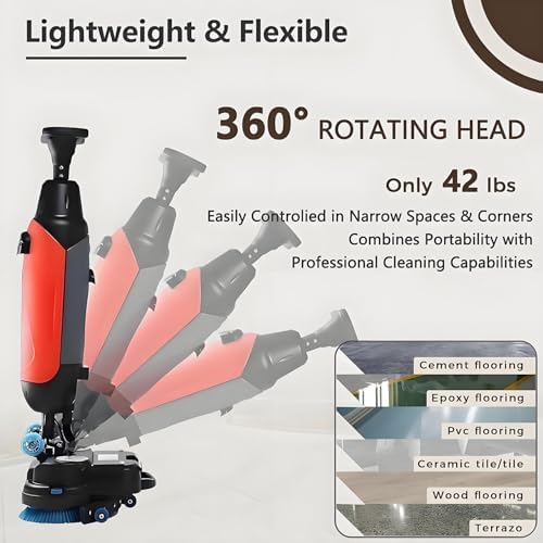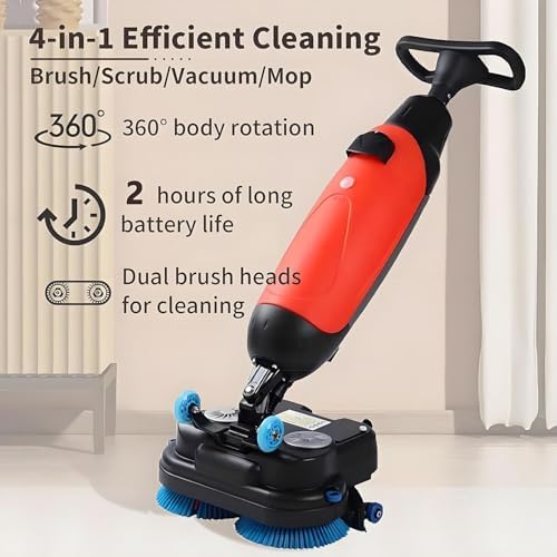 Experience effortless cleaning with our advanced floor scrubber buffer polisher machine. This powerful cordless power mop, driven by a 36V battery, is designed to deliver exceptional cleaning performance on all hard surfaces, making it an ideal choice for homes, businesses, and commercial environments. **Key Features:** 1. **User-Friendly Design:** The lightweight and ergonomic build, paired with intuitive controls, ensures that anyone can operate it with ease, even if they are new to floor cleaning. 2. **Versatile Floor Compatibility:** Safely cleans various floor types including tile, hardwood, laminate, and concrete, providing adaptability for different cleaning needs. 3. **Customizable Cleaning Options:** Adjustable settings allow for deeper scrubbing and vacuum suction, making it easy to tackle stubborn stains and dirt. 4. **Extended Runtime:** With up to 2 hours of cleaning on a single charge, this machine is perfect for large indoor and outdoor tasks without interruptions. 5. **Effective Dual Brushes:** The dual counter-rotating brushes offer powerful cleaning action, effectively lifting dirt and grime for a spotless finish. 6. **Effortless Mobility:** Equipped with transport wheels, this cleaner moves smoothly from room to room, enhancing your cleaning efficiency. 7. **Large Capacity Recovery Tank:** Collects up to 1.7 gallons of dirty water and debris, reducing the need for frequent emptying and allowing you to focus on the task at hand. **Specifications:** - Suction Width: 45cm - Brush Speed: 0-360 RPM - Brush Power: 250W x2 - Efficiency: 13,000 sqft/h (1200 ㎡/h) - Suction Motor: 150W - Clean Tank: 1 gal (4.5 L) - Waste Tank: 1.7 gal (7.5 L) - Battery: 36V 10AH - Runtime: 2 hours - Operating Noise: 43-56dB - Weight: 19 kg (42 lbs) - Size: 45x36x120 cm **Packaging Includes:** - 1 x Main Unit - 2 x Brushes - 1 x Charger - 1 x User Manual Enhance your cleaning routine with our floor scrubber buffer polisher machine and enjoy the convenience of a clea...