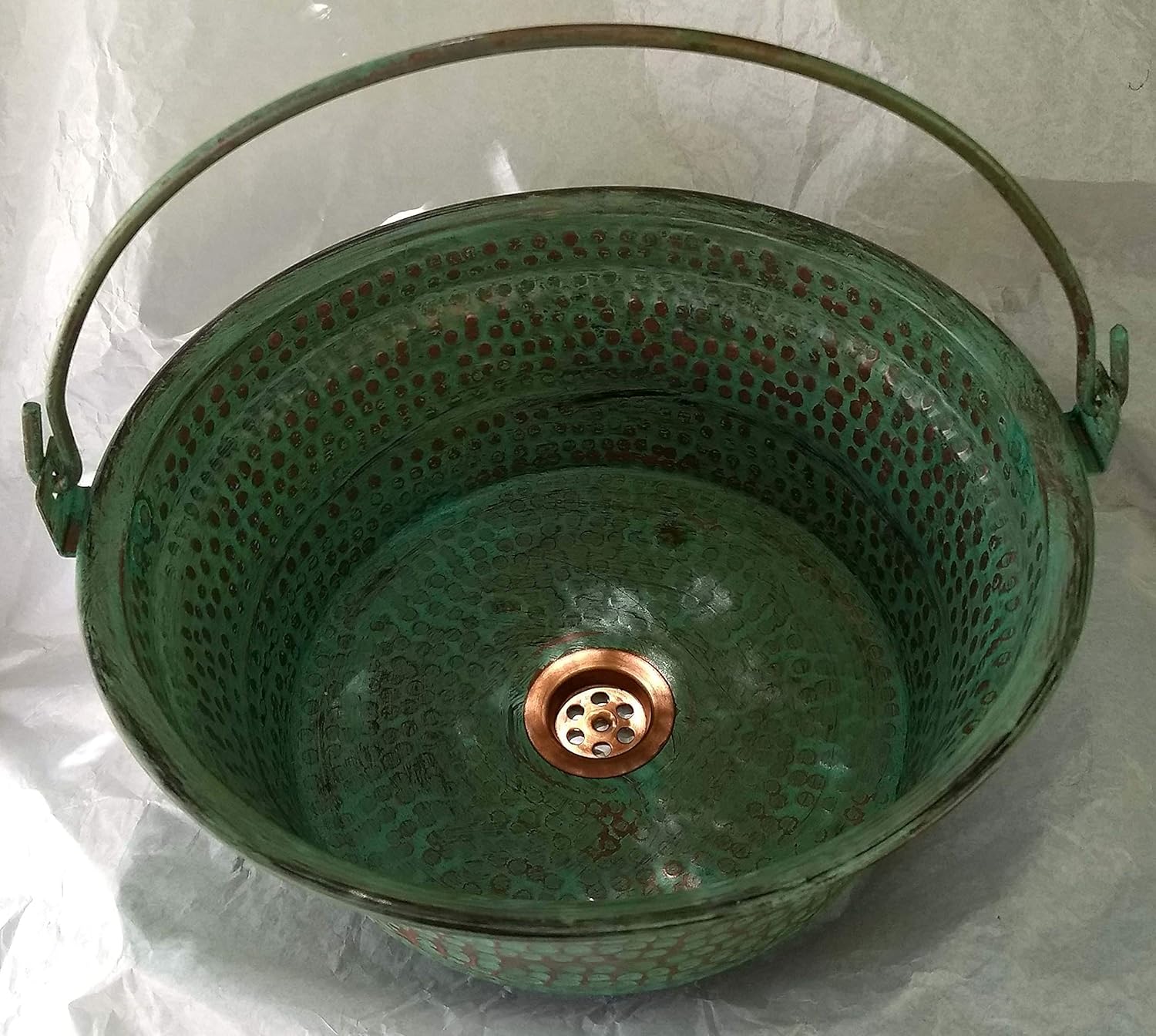 Size: 13X13X5 inches. We supply a variety of handcrafted high quality copper bowls from Egypt. We use healthy virgin recyclable copper never used before unlike bowls made in other parts of the world who use recycled used copper. . Shown drain cover is not included. Imperfections to be expected due to hand making. Copper is durable and recyclable. Ancient Egyptians, Pharaohs and Romans used copper to build their hand tools, weapons and jewelry. Our sink is not only a unique bowl but also a traditional craft taught from generation to generation through history.The sink bowl will look polished right out of the package. Copper oxidizes with time and reacts with many elements developing a unique patina over time. The best way to maintain and clean copper is by wiping the surface using regular soap and water and dry it using a soft rug. Waxing the copper will maintain the copper finish and luster for a period of time. Our sinks come with a connecting ring that acts as an interface between the rounded bottom of the basin and the flat counter top for easy installation. It serves both as the drain opening as well as the anchoring mechanism that holds the sink in place on the counter top. A mounting bottom ring is not necessary and may be added for additional sink security.