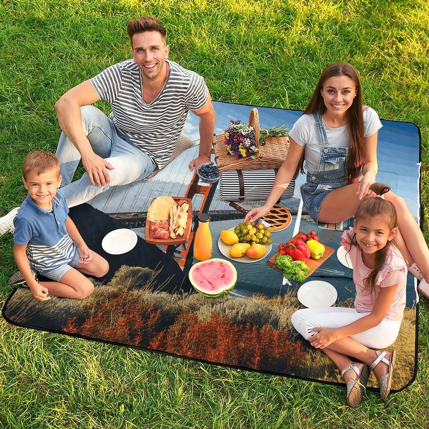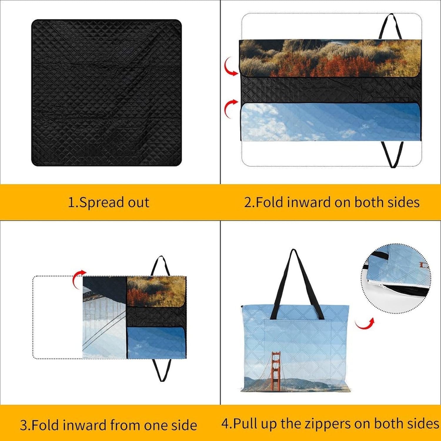 Elevate Your Outdoor Experience with the Versatile Picnic BlanketCollapsible Picnic Mat Picnic Essentials Convertible Tote Bag Portable Rug for Picnics Beach Essentials Camping Pad Cute Picnic Blanket Bag Foldable Travel Mat Large Family Picnic Blanket Outdoor Picnic MatsSuperior Protection and ComfortForget worrying about wet grass or prickly sand. Our blanket features a smart 3-layer construction. The top layer is soft to the touch, while the middle padding provides just the right amount of cushioning against hard ground. The bottom layer, made from durable 210D Oxford cloth, is completely waterproof and acts as a barrier against moisture and dirt, ensuring you stay clean and dry.Designed for the Modern ExplorerWe understand that space is precious when you're on the move. That's why our blanket features an ingenious foldable design. In seconds, it transforms from a full-size mat into a compact carry bag with a handle. This makes it incredibly easy to transport and store. But the innovation doesn't stop there; the carry bag itself is designed to be used as a sturdy shopping tote, making this blanket a true 2-in-1 essential for eco-conscious shoppers.Choose Your Perfect Size:59 x 40 inches / 150 x 100cm: Ideal for couples or solo use.59 x 59 inches / 150 x 150cm: Perfect for a small family or small group of friends.78.8 x 78.8 inches / 200 x 200cm: Our large size, perfect for family gatherings and group outings.Whether you're planning a beach vacation, a camping trip, a hike, or a simple day at the park, this cute picnic blanket is your reliable partner for comfort and convenience. Pack it, carry it, and enjoy the outdoors without compromise.