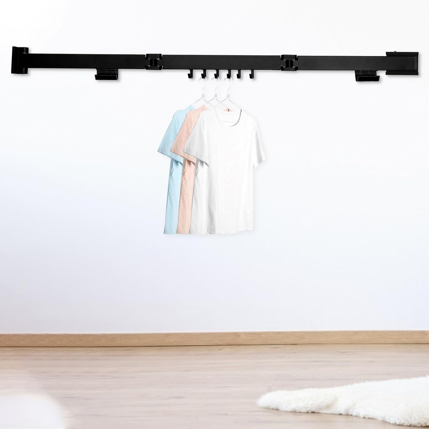 Package Include 1 x base 1 1 x nail-free glue 1 x bag of screws Features - Color: Black Clothing Rod - Material: Space Aluminum Coat Hanging Rack -Product Info:Drying rack - Made of and sturdy material, strong and Punch-free Storage Rod. - Good choice for enhancing the usage of bathroom or balcony Coat Hanging Racks. - Perfect accessory for your family and hotel. Also, a wonderful gift for friends and family Nail-free Clothing Hanger. - Suitable for living room, bathroom, hotel, camping, laundry room or balcony Clothes Drying Rack. - Fine workmanship and chic details, it is space-saving and punch-free Retractable Wall Drying Rack.Goods DescriptionStorage Pole Used to wet swimsuits, clothes, and delicate clothes that cannot be machine-dried.Nail-free Clothing Hanger Very easy to retract, wall-mounted design and space-saving, Suitable for any family, hotel, indoor and outdoor, laundry room.Adjustable Clothing Rod Made of materials,