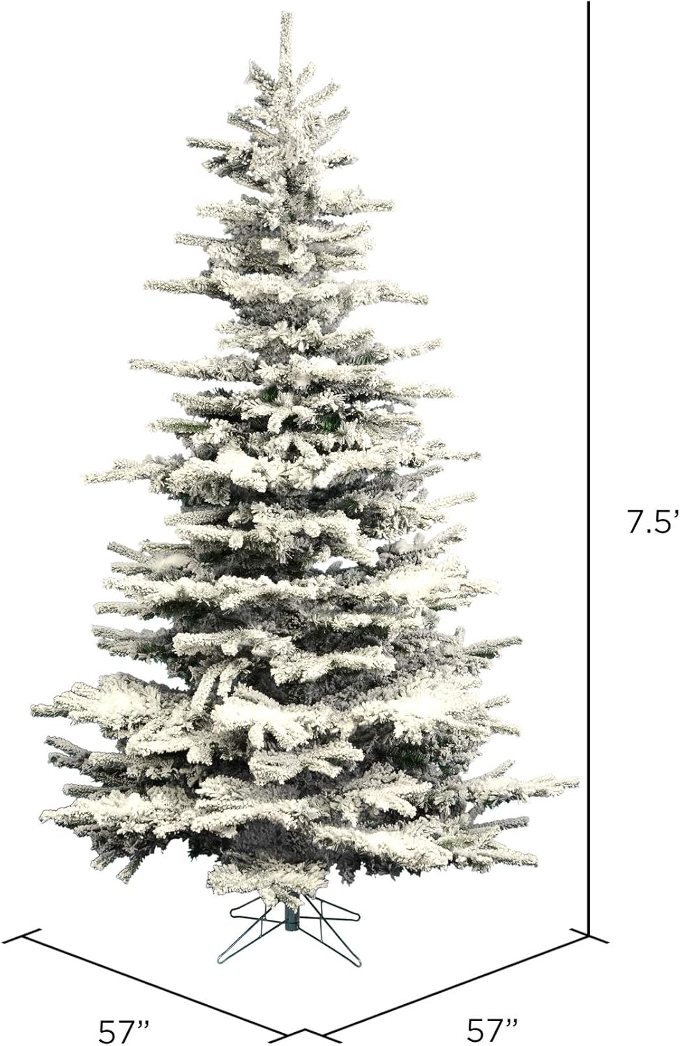 Vickerman 6.5' x 50" Unlit Flocked Sierra Fir Artificial Christmas Tree with 943 PVC tips. This tree comes unlit, features beautifully flocked tips on metal hinged branches, and a Metal tree stand is included. The flocking on this tree gives the look of a fresh winter snowfall and will make the perfect centerpiece for your home this holiday season. Make a statement in any room around your home with this unqiue flocked sierra fir tree. This durable tree is maintenance-free with easy assembly and recommended for indoor use, measuring 78" H x 50" W x 50" L. Product may ship condensed in transit, fluffing of the branches may be required to reach your desired look. Enjoy this expert-designed Flocked Sierra Fir Tree around your home while creating new memories and celebrating traditions with family and friends this Christmas. For additional complimentary accents see the many wreaths and garlands available from Vickerman. Vickerman has been an industry leader in quality, design and manufacturing since 1940.