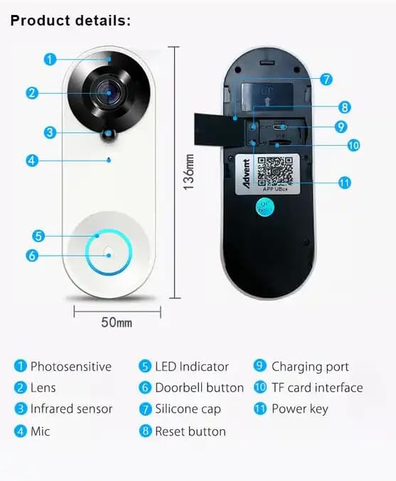 This WiFi Video Doorbell with Intercom Camera and Indoor Ding Dong Chime Receiver is a smart home security solution that allows you to see and talk to visitors from anywhere in the world. The doorbell features a high-definition 1080p camera with a wide-angle lens, providing clear and detailed images of anyone who approaches your front door. It also has a built-in intercom system that allows you to communicate with visitors directly through the doorbell, without opening the door. The doorbell is powered by a rechargeable battery, ensuring that it is always ready to work. It also has a motion sensor that detects any movement near the door and sends instant alerts to your smartphone. The indoor ding dong chime receiver allows you to hear the doorbell ring even when you are not at home. The doorbell is easy to install and setup, and can be connected to your home's WiFi network. It also has a range of up to 300 feet, allowing you to cover large areas. Overall, this WiFi Video Doorbell with Intercom Camera and Indoor Ding Dong Chime Receiver is a reliable and convenient way to keep your home safe and secure.